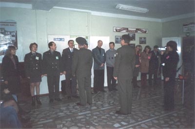 В музее можно узнать много интересного о тех, кто встал на стражу законов нашей Родины: Евгений Анатольевич Семенихин – судья Кировского района г. Красноярска, Наталья Валерьевна Маланкина – судья Красноярского краевого суда, Оксана Владимировна Хлынова – подполковник юстиции, старший следователь по особо важным делам главного следственного управления Красноярского края; Владимир Анатольевич Бахмацкий – заместитель заведующего отдела департамента общественной безопасности в администрации г.Красноярска; Ольга Юрьевна Куданенко – мировой судья Советского района г.Красноярска; Александр Владимирович Иванов – подполковник, начальник УКЦ ГУВД Ленинского района г. Красноярска; Вадим Викторович Репин – адвокат города Москвы; Дмитрий Геннадьевич Жога – начальник отдела вневедомственной охраны Свердловского района города Красноярска; Владимир Сергеевич Смирнов – начальник вневедомственной охраны Советского района города Красноярска и др. Многие из них присутствовали на встрече старшеклассников по случаю празднования «Дня защитника Отечества», которая проходила накануне 35-летия школы. Все было так, как когда - то начинался урок начальной военной подготовки – с линейки. Выпускник 1975 года Юрий Иванович Андрианов рапортует своему учителю подполковнику Василию Спиридоновичу Дробышеву о прибытии на встречу 16 выпускников. Я уверена, что эта встреча останется в памяти всех надолго! Сколько добрых слов было сказано в адрес школы, педагогов и, конечно, Василия Спиридоновича. Для нас, нынешних школьников, это еще одно поколение благодарных выпускников нашей родной школы.