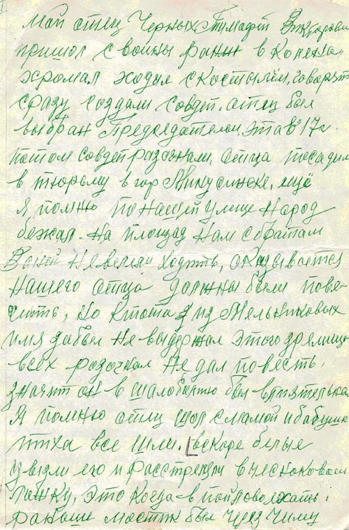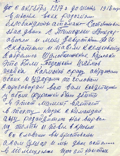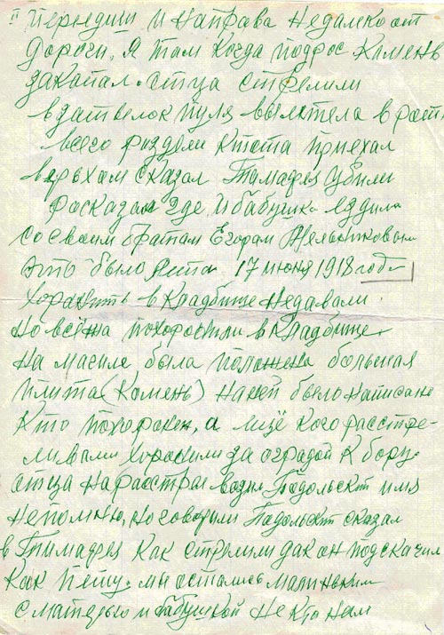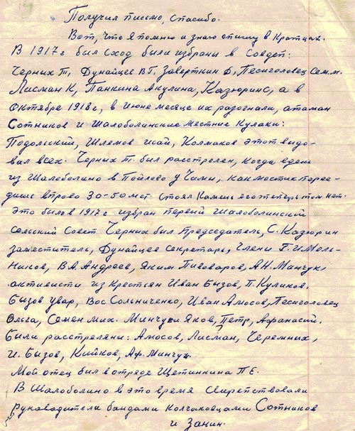 Воспоминание жителя с. Шалаболино Шишкина А. о событиях 17-18 годов.