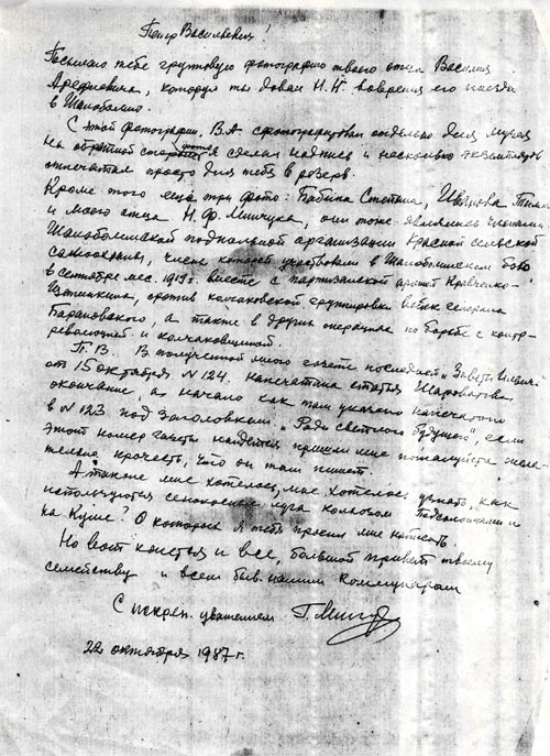Письмо Песиголовца Григория Семеновича краеведам от 20.03.89 года. ф 1, о 1, д. №25