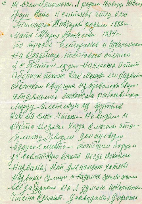 Письмо Заверткина Дмитрия Ионнакиевича от 1998 года.
