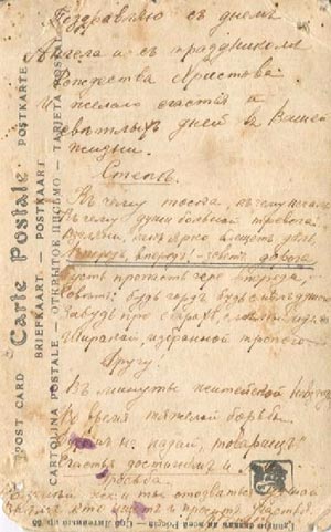 Поздравительная открытка начала ХХ века. Принадлежала семье Коноваловых.