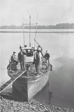 1958г. т/х «БУРИЛЬЩИК» р. ПОДКАМЕННАЯ ТУНГУСКА, д. ЧЕРНАЯ. Зауголков Р.Я.первый