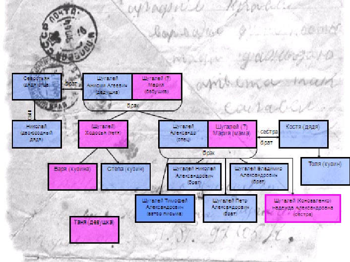 Сопоставив имеющиеся данные, оказалось, что действительно родственники, упомянутые в письме, являются близкими или далекими родственниками.