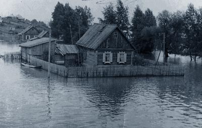 Получилось так, что вода с реки и с озер соединилась. И без того жилось очень тяжело, а тут еще оказалось парализовано все движение, перебирались на лодках.