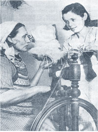 Всего же по району на 19 ноября было сдано 416 полушубков, в том числе 145 полушубков сшито на местах из сданных овчин. Изготовлено из поступившей шерсти 878 пар валенок и готовых сдано 113 пар. Из сданной шерсти связано 568 пар варежек, 176 пар носков, сдано 120 пар готовых варежек и 57 пар носков. Сшито шапок – ушанок 390, сдано готовых 194. От колхозов и колхозников поступило 2294 овчины и 1230 мерлушек. Фуфаек сдано 521, брюк ватных 77, полотенец 702, нижнего белья 161 пара. Изготовлено 32 пары меховых рукавиц и сдано 43 пары. Много поступило наволочек, простыней, одеял, шарфов, лыжных костюмов, подушек и других вещей».23