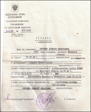 А справка о реабилитации была получена нашей мамой уже в 1994 году через четырнадцать лет после смерти бабушки.