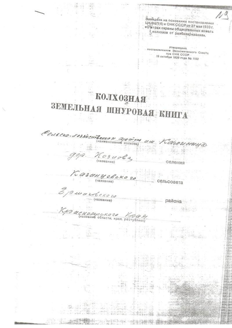 колхозных организациях по Казанцевскому сельсовету и соотнесение с имеющейся