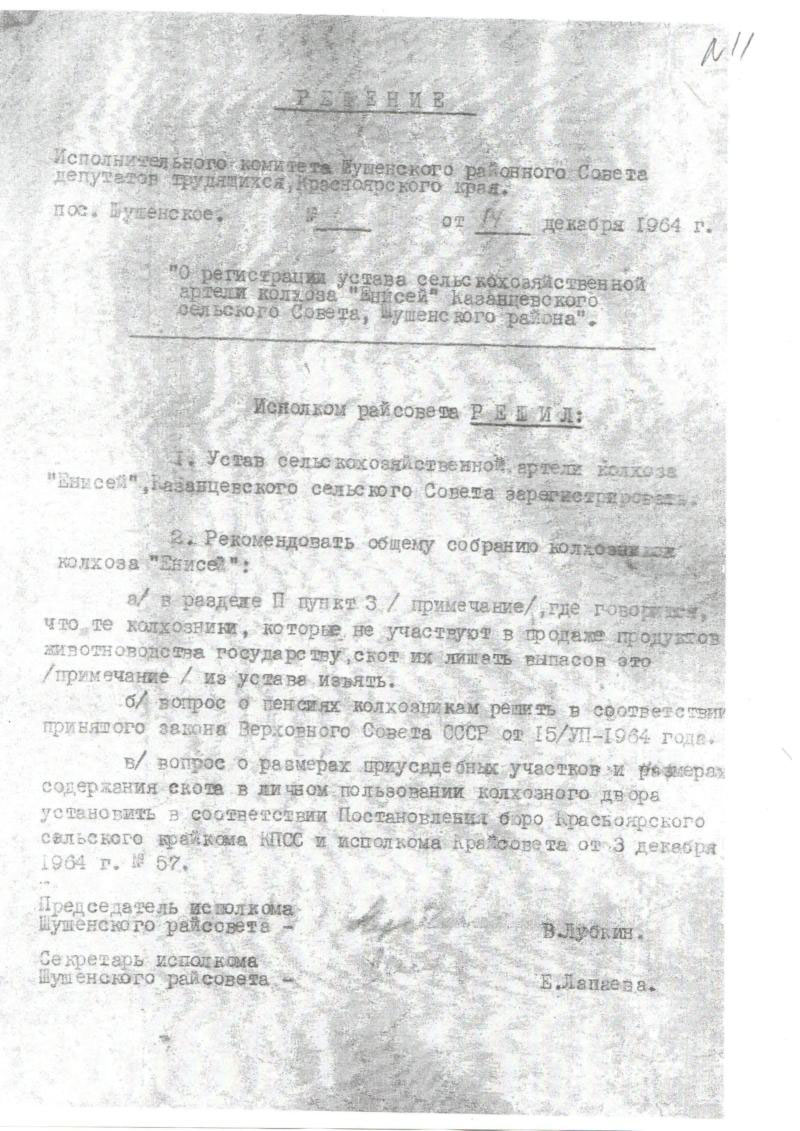 11. Решение Исполкома Шушенского районного совета депутатов трудящихся,