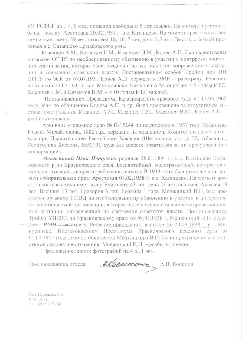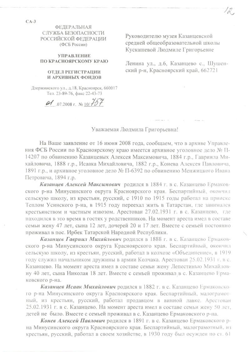 12. Ответ из УФСБ России по Красноярскому краю – 10/757 от 01.07.2008 г.;