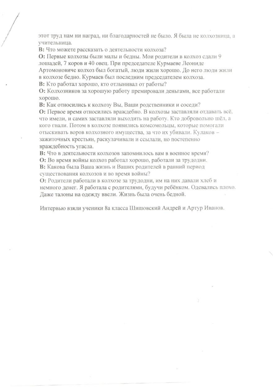 В: Что можете рассказать о деятельности колхозов и о своей деятельности там?