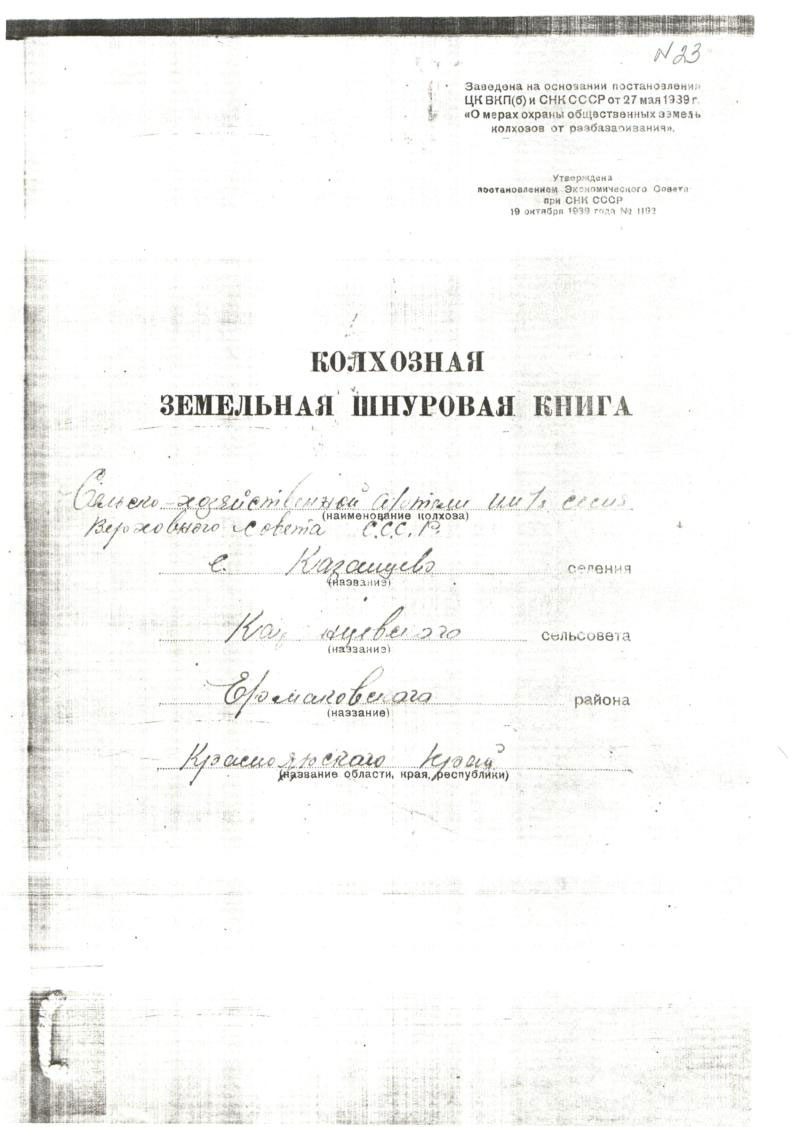 23. Колхозная земельная шнуровая книга к/х им. Первой Сессии Верховного Совета