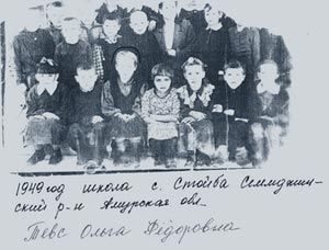 Ольга Фёдоровна (в третьем ряду, третья слева) 4 класс. 1948 год.