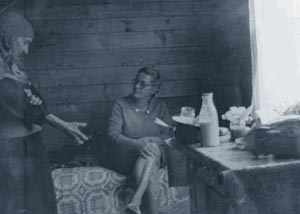 В Туруханске она работала уборщицей в школе, мыла полы, белила стены, таскала воду из Енисея, ездила косить траву и собирать картошку. Потом ее взяли художником в клуб...