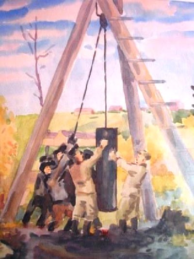 В 50-х годах прошлого века в нашем Мотыгинском (тогда Удерейском) районе несколько лет жил Георгий Карлович Вагнер. Долгое время у нас о нем практически было ничего не известно. Во время одной из ревизий Мотыгинского районного краеведческого музея в запасниках была обнаружена папка с акварелями. Эта находка заинтересовала сотрудников музея, начался поиск. По опросам старожилов было установлено, что эти рисунки рязанского художника Вагнера, сосланного в 1949 году в поселок Бельск на бессрочное поселение. Здесь он работал в геологоразведочной партии чертежником. Об этом говорят и его рисунки, на которых мы видим работу геологической партии, то, как горняки копают шурфы, а женщины воротком вытаскивают породу из шурфа; буровики бурят вручную скважины примитивным станком. Среди этих рисунков также есть виды Ангары и ангарской природы.