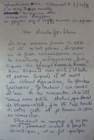 Письмо племянника Марселя Лефевра Л.Лефевра Николаю Зорихину (1967 г.)