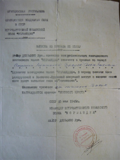 К этому времени он награжден двумя орденами Красной Звезды и двумя французскими Боевыми Военными крестами.