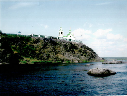 Вид на Рыбинскую церковь с реки Ангара (реконструкция)