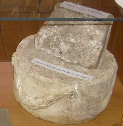 Кирпич из кладки церкви. Фрагмент колонны Рыбинской церкви.