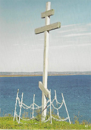 Крест, возведенный на месте разрушенной церкви (река Ангара)