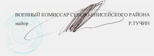 Подтверждение военным комиссаром Северо-Енисейского района Р. Тучиным,