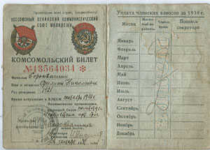 Сороквашин Филипп Николаевич и его комсомольский билет.