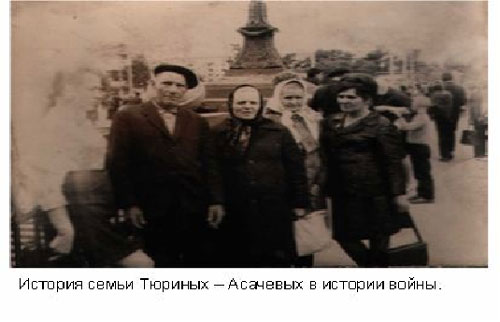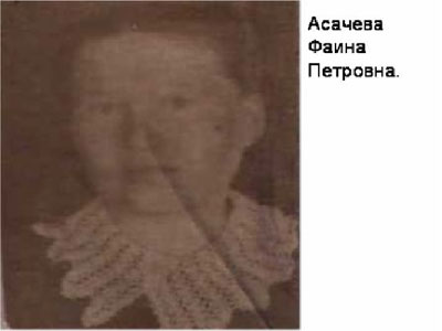 Есть в семье Тюриных и учителя, и строители, и инженеры, врачи. Собирая материал, я несколько раз была в семье Галины Андреевны Тюриной. И однажды я встретила там еще одну очень интересную женщину. Это была Асачева Фаина Петровна -родоначальница семьи Асачевых, которая в то время гостила у своего сына. Ее воспоминания я тоже решила записать.