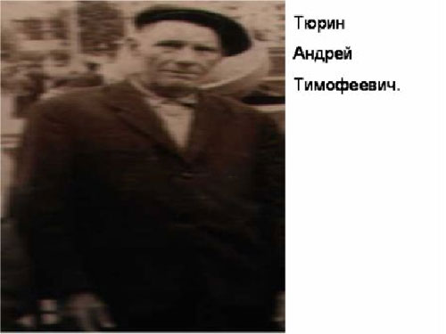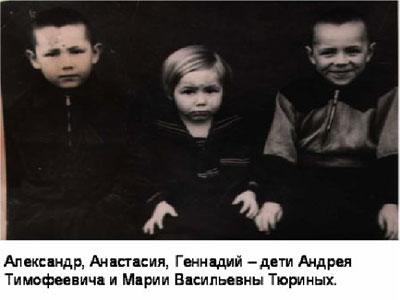 Не обошла война стороной и семью Тюриных. Андрей Тимофеевич прошел Финскую кампанию, во время Великой Отечественной войны воевал на фронте. Попал в окружение к немцам. Их группа из семи человек сумела незаметно переплыть реку, отсиделась в ближайшей деревушке и ушла в лес к партизанам. Вскоре Тюрин снова оказался на передовой. Под Варшавой был тяжело ранен в ногу. Домой вернулся инвалидом. Но война началась не только в тех районах, которые непосредственно оказались в зоне военных действий. Ее дыхание почувствовали и в глубоком тылу.