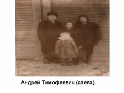 А сколько было выплакано слез, и что творилось в ее душе, когда пришла в самом конце войны похоронка на мужа, знает только она одна. Ну, ничего, все преодолела. Вскоре вернулся муж из госпиталя, инвалидом. Радости Марии и детишек не было предела. После войны родились еще трое детей: Юрий, Владимир и Галина. За прожитую жизнь Андрей Тимофеевич работал на тракторе. Шил в мастерской сапоги, туфли, дохи, шапки, плел из прутьев короба. Была у него слава народного умельца. Мария Васильевна растила детишек, работала свинаркой, на овчарне, на полях и поваром. Несмотря на трудности, в семье всегда было взаимопонимание, уважение и любовь. Дети росли на примере своих родителей, а в селе их уважали. Андрея Тимофеевича выбирали народным заседателем, депутатом сельского совета, а Мария Васильевна всегда входила в состав родительского комитета школы и женсовета села.