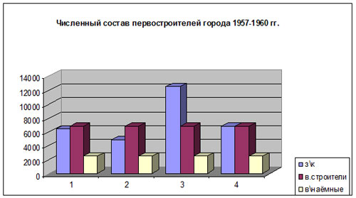 В музее ОАО «Электрохимический завод» в книге Ю. Копеева «История химцеха за 40 лет» нашлись цифры численного состава строителей города.