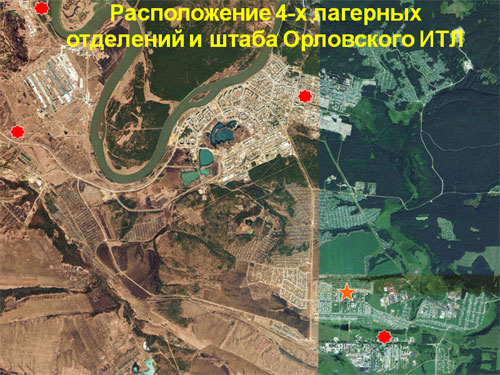 Николай Федорович Гончаров и Иван Феофанович Чуб рассказали, где располагались четыре лагерных отделения Орловлага, на каких объектах работали.