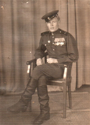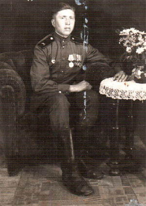 За сбитые в бою немецкие самолеты я с товарищами был награжден медалью «За отвагу». Потом мы готовились к Львовско-Берлинской операции. Когда стояли в обороне, то довелось увидеть командующего нашим фронтом Конева И. С.. Он проходил с командирами, осматривая огневые позиции. Мы в это время чистили стволы пушек от нагара, образовавшегося от стрельбы. Когда пошли в наступление, освобождали Львов, Краков. До сих пор трудно вспоминать то, что видел в концлагере. Многие военнопленные так были истощены, что не могли передвигаться. Их мы выносили из бараков на руках, как детей. Когда вступили на территорию Германии, то на протяжении 50 километров в поселках не было людей, боялись русских. Был издан нашим командованием приказ, запрещавший проявлять жестокость к мирному населению, но были случаи, когда солдат расстреливали за нарушение этого приказа. Наша дивизия участвовала в штурме Берлина. Сначала был артиллерийский обстрел. Потом самолеты бомбили город так, что по нему можно было проехать только на лошади. Мы сбили четыре немецких самолета. Меня наградили медалью « За отвагу». Принимал участие в освобождении Праги от немцев. Нас встречали радостные люди с цветами. Там встретил день Победы с товарищами по 6 гвардейской, Львовско-Берлинской, орденов Кутузова и Богдана Хмельницкого зенитно-артиллерийской дивизии. Служил в Германии до 1949 года. Демобилизовался. Всю жизнь проработал в колхозе «Маяк», награжден знаком «Ударник 9 пятилетки», медалью «Ветеран труда». Часто приглашали вместе с другими ветеранами войны на уроки мужества в школу. Вместе с женой, до замужества Глубоковой Верой Михайловной, награжденной медалями «За доблестный труд в Великой Отечественной войне 194 1- 1945 гг. » и «Ветеран труда» вырастили и выучили четверых детей. Подрастают внуки и правнуки, а это значит, что жизнь прожита не зря.