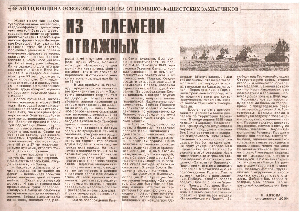 В местной газете «Нива» в 2008 году была опубликована статья о дедушке, названная «Из племени отважных».