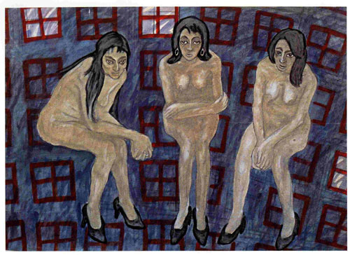 Почти одновременно художник работает над картиной «Невесты» (1967-1972). Вытянутый темно-серый холст. Потухшие окна безжизненного города, на фоне которых только три одиноких окна освещают это забытое богом место светом веры и надежды на скорое возвращение своих любимых домой. Три одинокие фигуры обнаженных женщин, скорчившихся от страха и боли. Это невесты войны, не дождавшиеся своих женихов, которые стали вдовами раньше, чем стали женами.