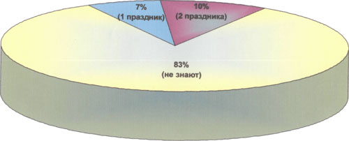 10 % ответили, что знают значение только двух праздников,