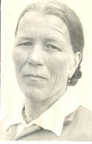 Царькова Пелагея Антоновна родилась и выросла в Карагатске, Ермаковского района. Во время войны работала вместе с другими в колхозе. Поля были неплодородные. Пахали землю на лошадях, быках. Сеяли пшеницу, ячмень и овес, но хлеб вырастал плохой. Взрослые и ребятишки в солнечную погоду пололи траву и осот на полях. Подростки почти все ходили босиком, только в сырую погоду надевали сапоги. В уборочную страду взрослые косили, возили снопы и молотили, а подростки собирали в корзинки колоски. Кормили всех на работе похлебкой. Кукурузу и просо толкли в ступе, добавляли картошку и пекли хлеб. Мама часто варили постный суп и ели, хотя он был невкусный, потому что голодали. Одежду праздничную одевали только в Новый год, Масленицу. Отца не взяли на фронт из-за болезни, он сшил ей пальто, в котором она ходила. Жили плохо, ждали окончания войны. День Победы запомнился на всю жизнь, потому что надо было что-нибудь нести к столу, который был на улице, а у них нечего было нести. Вот такое безрадостное было детство.