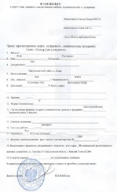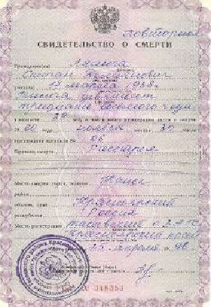 ** - из свидетельств о смерти