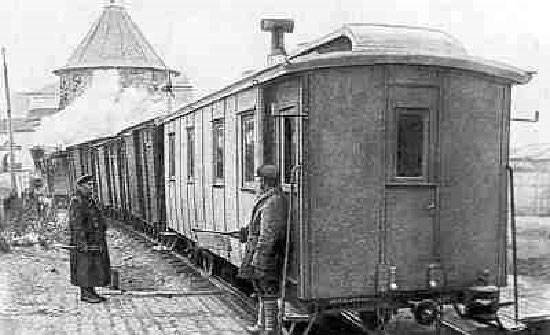 9.Соловецкая железная дорога с единственным пассажирским вагоном. Фото из Норильского краеведческого музея