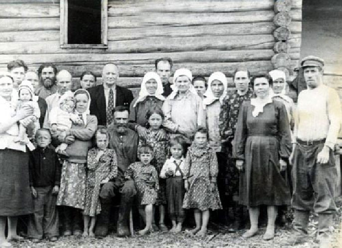 25.Конец 1950-х гг.: Илларион Сергеевич после освобождения в Мордовии, в родных Старых Турдаках с родом Поздяевых. Фото из архива О.А. Ипатовой