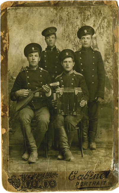 Происхождение фамилии Киселевы идет от не православного имени Кисель, или от характера человека. Киселевы были тоже не бедной семьей. Основатель рода-Анисим, мы не смогли узнать, откуда он появился в Петропавловке. Четыре сына: Филипп, два Ивана, Прокопий. В деревне по сей день сохранилось урочище Киселиха и Пронькина пашня. Прокопий - прапрадед автора реферата. Мы знаем что он с 1900 года рождения, но в семейном архиве есть фотография где он совсем юный, в форме солдата царской армии, (слайд № 5), да и прабабушка говорила, что он был на трех войнах. Тогда он родился раньше, примерно в1897году, если воевал на Первой мировой войне. Вернулся в Петропавловку лишь в 1923году. Человек он был грамотный, поэтому стал сразу работать продавцом в Ужурском райпотребсоюзе. А затем назначен председателем сельпо.