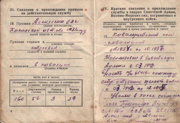 – 1937 годах служил в кавалерии на Дальнем Востоке. Из хакасской молодежи в те