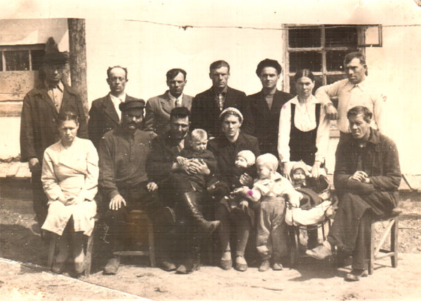 Вверху крайние справа Александра и Иван Киселёвы, на руках ссыльнопоселенцев