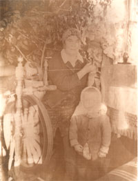 «В нашей деревне не пряли и не ткали, - рассказывает дальше Мария Филипповна, - хотя коноплю сеяли, но только для получения масла из семян и для витья верёвок. Отец большую семью одевал другим путём. Он два раза в год ездил нелегально в Китай, где у него был хорошо знакомый китаец. Отец запрягал пару лошадей, брал две матрасовки и уезжал за товарами. Мать очень переживала, пока он не вернётся домой. А когда он возвращался, то привозил две матрасовки, битком набитые товаром. Для мужчин на брюки, на рубашки, на нижнее бельё. А также сатин, ситка, полушалки для женщин. Шили всё сами, отец, мать. Вот почему в нашей семье не пряли и не ткали холст. Но вязали. К примеру, длинные шарфы из козьего пуха. Козы были пуховые, с длинным пухом, хорошо прялось. Коз держали, но немного.