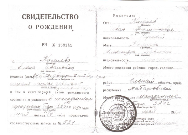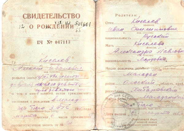 Свидетельства 4-х детей, рождённых в Магадане.