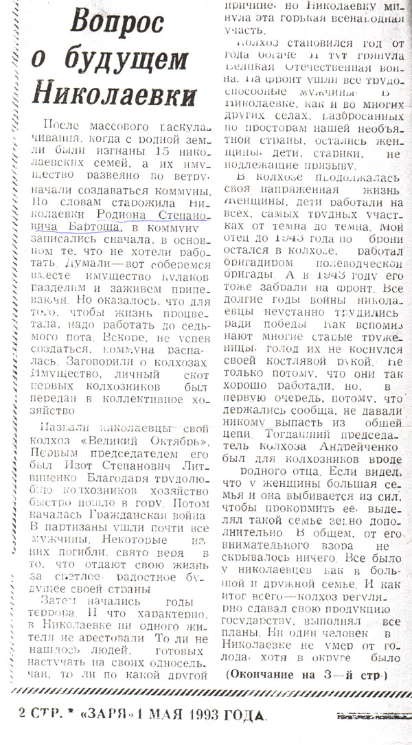 (Газета «Заря» 1993 г.)