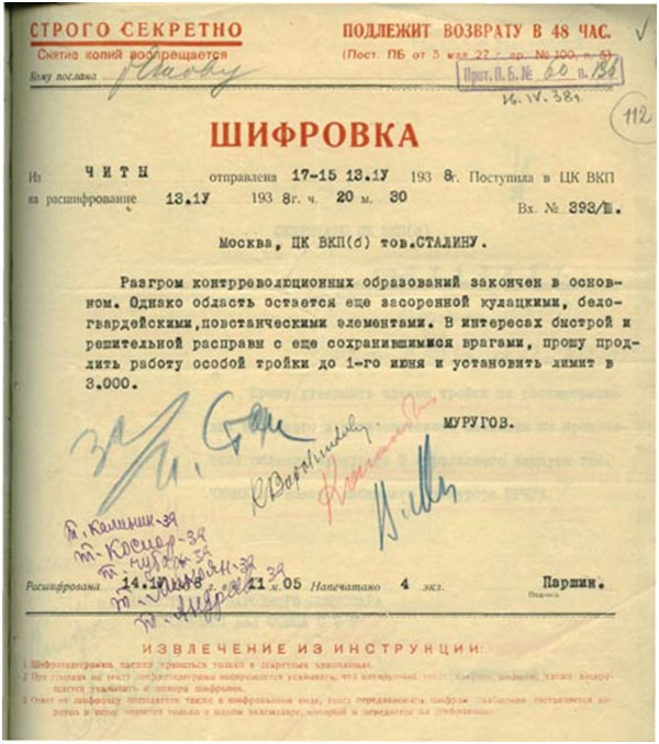 В каждой области были образованы «тройки УНКВД». Состав «тройки» по Читинской области: Хорхорин, Муругов и Мартынов.