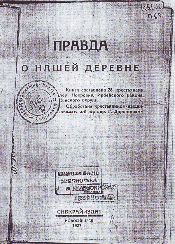 7. Правда о нашей деревне. Книга крестьян деревни Покровки. Сибкрайиздат,