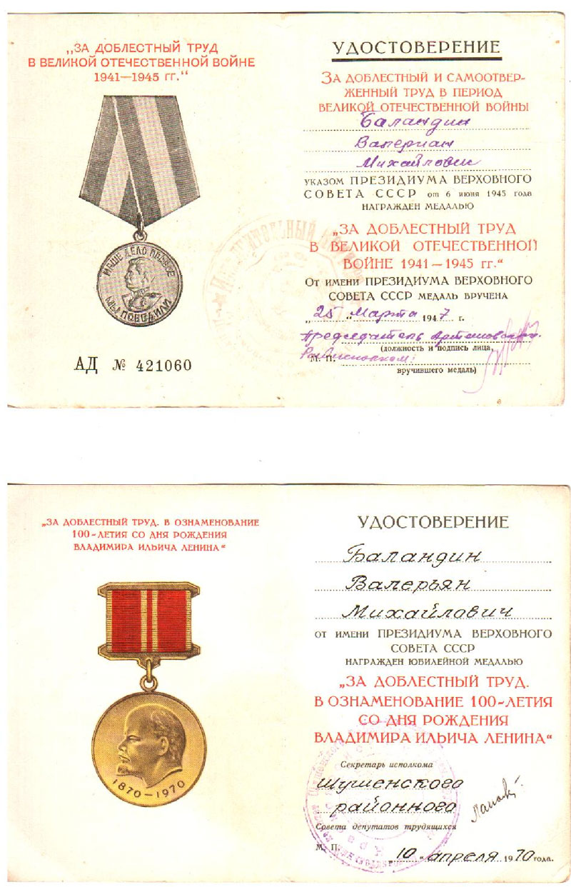 Когда семью М.Д. Баландина раскулачили, нашему прадеду Баландину Валерьяну Михайловичу было 16 лет, следовательно, на становление его жизненных взглядов, несомненно, повлияло раскулачивание.