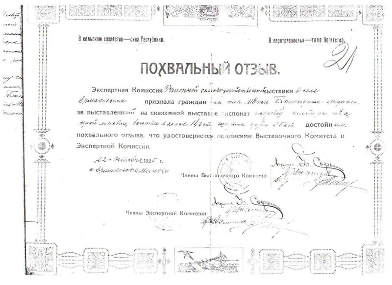 21. Хлеб: овса 3 пуда, пшеницы 3 пуда, конопли 1 пуд (приложение 5).