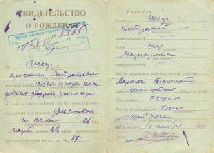 5. Свидетельство о рождении И.Сабельфельд