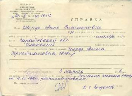Анна Соломоновна Шерф (Шудрякова) вспоминала, что так случилось с её дядей по отцовской линии. Был призван в армию перед войной, служил, а затем, когда началась война, был отправлен в лагерь по причине принадлежности к немецкой национальности.